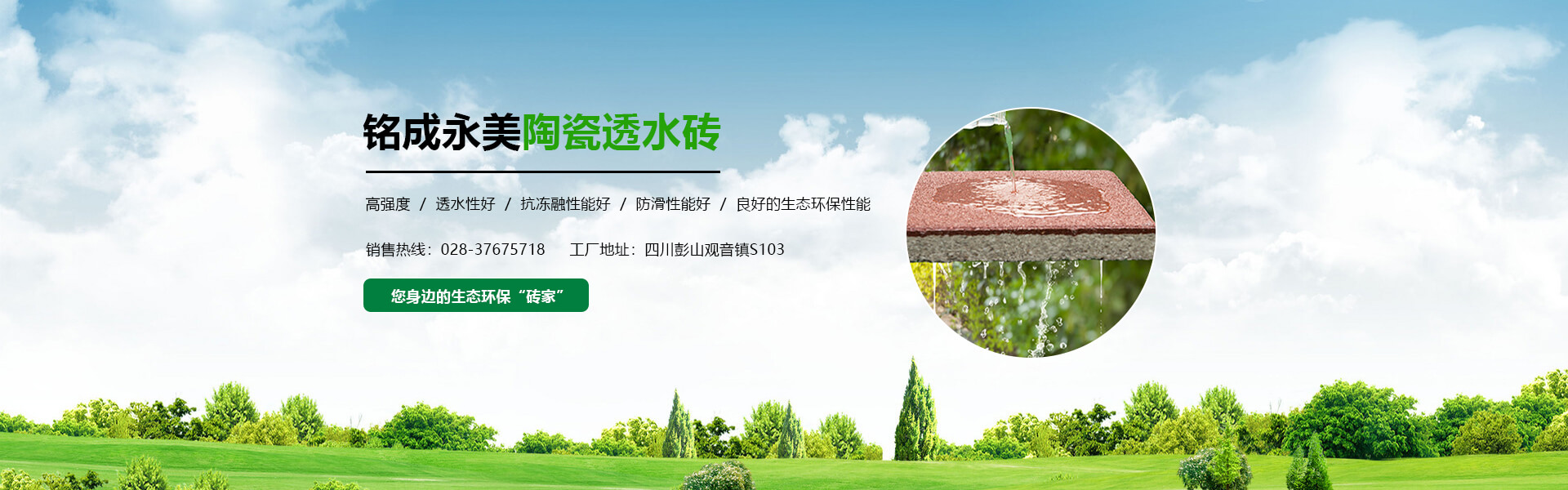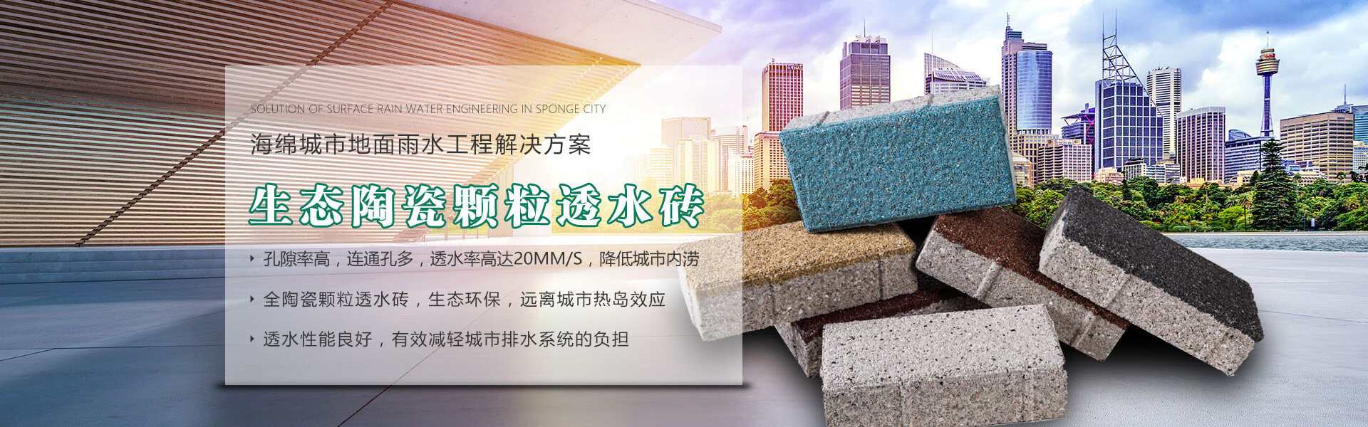 四川銘成永美環保科技有限公司(www_mcotcn_com.super-code.cn)是國內非常早研究探索海綿城市的企業之一,公司主導產品:海綿城市鋪路磚家---銘成永美生態陶瓷透水磚已在全國多個重點項目使用。公司透水混凝土、雨水收集利用系統正在全國推廣。公司將整合海綿城市規劃設計、污水處理、污泥利用、環保設備、社會資本等海綿城市相關產業。為解決城市“熱島效應”、地表硬化,防止城市內澇,營造高質量的自然生態環境,改善城市生態平衡而不斷努力!公司將充分利用現有的互聯網資訊平臺,整合生態海綿城市產業鏈,打造集互聯網、科研、生產、銷售、規劃設計、PPP項目營運、工程施工為一體的綜合性環保科技公司,已初步建立覆蓋全國的業務團隊和渠道。